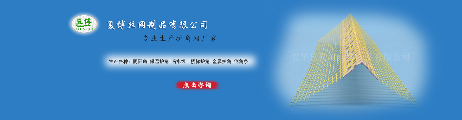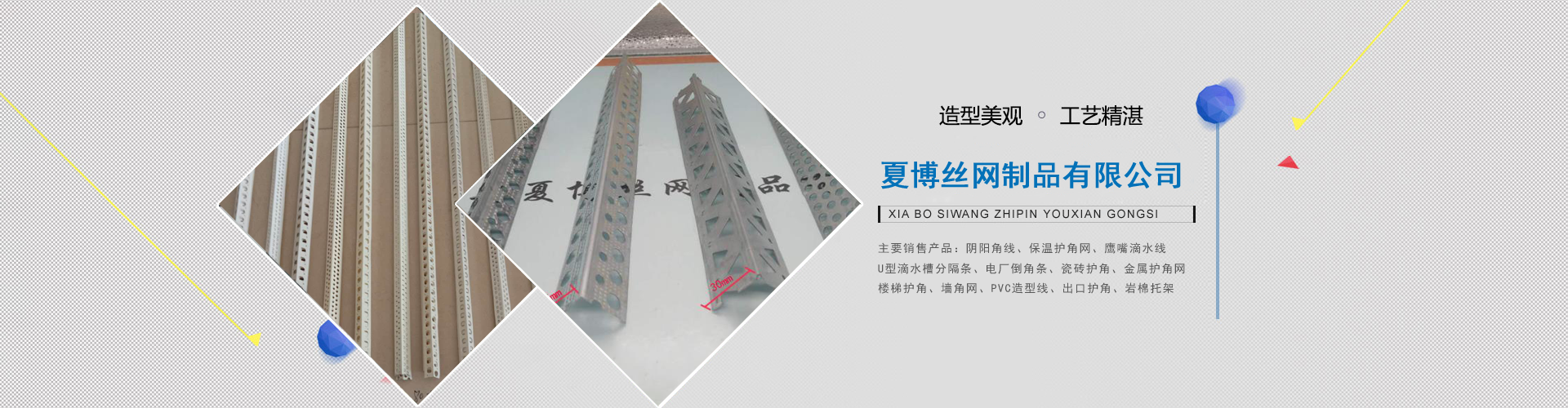 安平夏博絲網(wǎng)制品有限公司多年專(zhuān)業(yè)生產(chǎn)齊全的陰陽(yáng)角線,保溫護(hù)角網(wǎng),帶網(wǎng)U型分隔條,鍍鋅板沖孔護(hù)角條等產(chǎn)品。以科技為基礎(chǔ),質(zhì)量為根本!