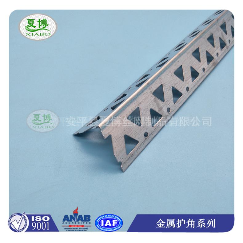 (5)、護角尖角處特有的圓筋突出處理,可以使覆蓋在上面的填縫料更厚一點,防撞效果更好,鍍鋅板上的麻點可以增加護角跟填縫料的摩擦系數,圓形沖孔的設計,有效了連接填縫料,使其連為一體的樓梯陽角更堅固。