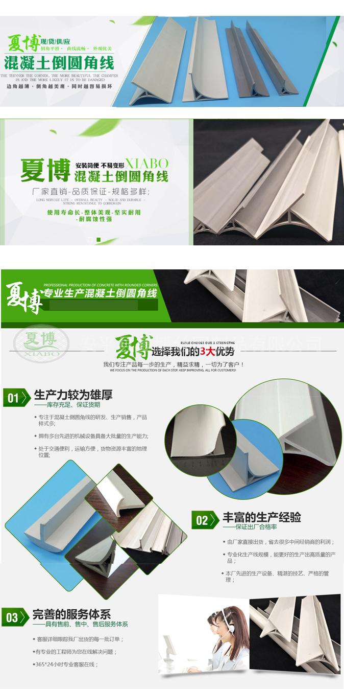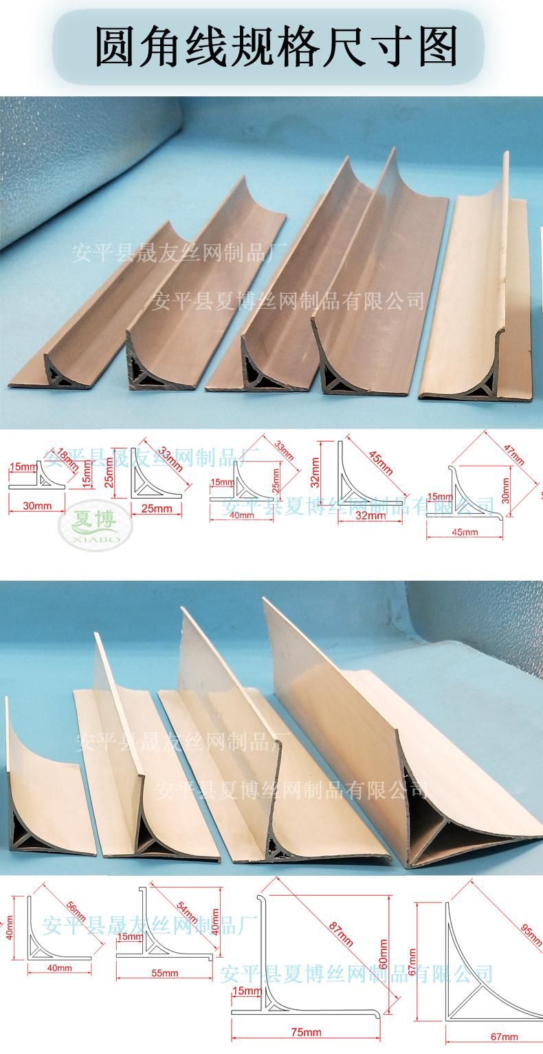 夏博公司生產(chǎn)的倒角線(xiàn)有多種規(guī)格,圓弧的角度尺寸也分好多種,現(xiàn)在正值施工潮,各種規(guī)格目前現(xiàn)貨充足的。