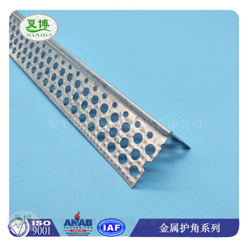 (3)、樓梯護角網,通過圓孔方便打釘,且使得護角條與邊角部位的石膏板或者其他粘結材料結合的更加牢固。